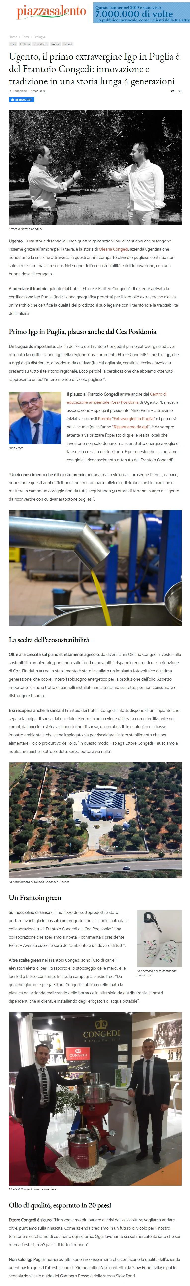 Ugento, the first IGp extra virgin olive oil in Puglia is from Frantoio Congedi: innovation and tradition in a 4-generation history