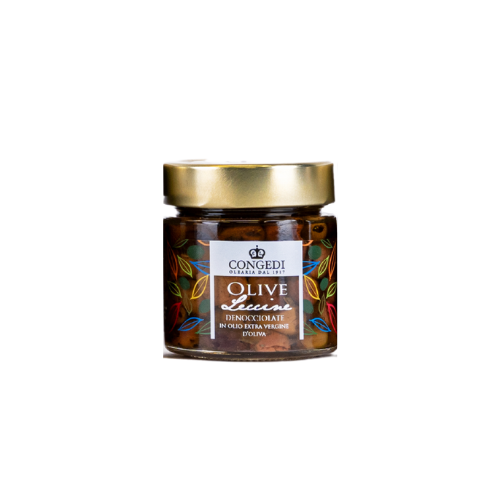 Ottenute dalla migliore selezione di olive Leccine, Celline e Pecholine, molto diffuse nel Salento in Puglia, denocciolate e conservate sott’olio extra vergine di oliva CONGEDI. Ottime con gli aperitivi e con la pasta Confezionato in vaso da 220 gr