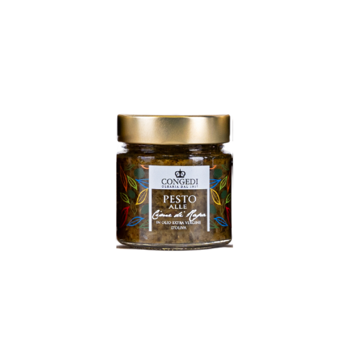 Il Pesto alle cime di rapa rappresenta una delle tipicità che più rappresentano la Puglia. Ottimo e veloce per condire pasta nonché le orecchiette tipiche Pugliesi. Confezionato in vasetto da 220 gr