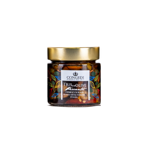 • TRIS DI OLIVE PICCANTI DENOCCIOLATE IN OLIO ESTRAVERGINE