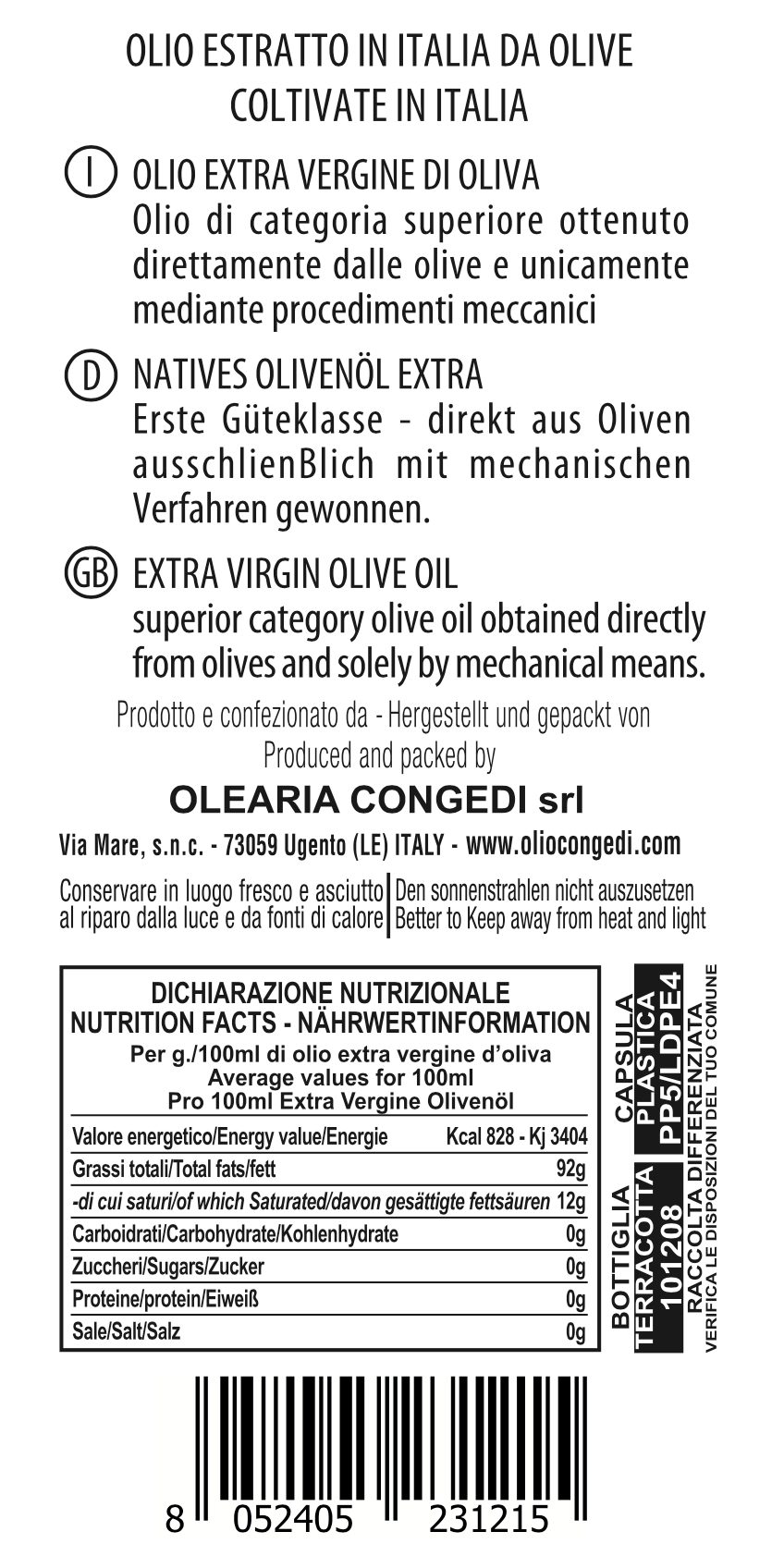 Da un’antica tradizione Pugliese, in Salento, nasce il progetto “ Anfora Collection”, che racchiude l’arte della lavorazione della terracotta e l’antica tradizione olearia della Famiglia Congedi. Ve lo presentiamo in diverse colorazioni e con un design moderno e raffinato. Può rappresentare un originale complemento d’arredo, con tappo dosatore.