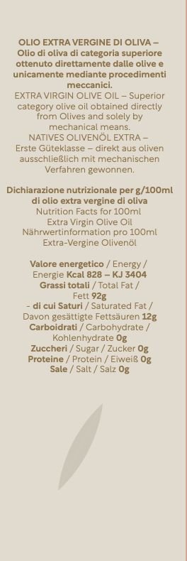 Profilo Sensoriale: Olio fruttato medio dal colore verde, si diversifica con sentori di